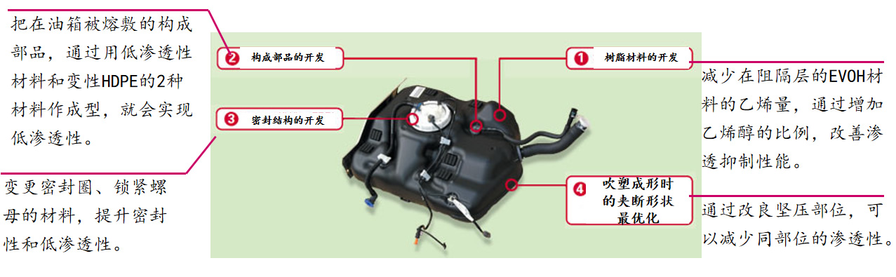 把树脂制燃油箱作为主力产品的八乐鱼网页版登录入口,马上把对应PZEV规定(由美国加利福尼亚州大气资源局CARB制定的Partial-Credit Zero Emission Vehicle 气体排放规定)的燃油箱在进行产品化的材料比例与燃油箱素材开发上独自专注地作了努力研究。在最高级的安全性,并且兼顾考虑到环境这两方面上,提高了商品的竞争力。